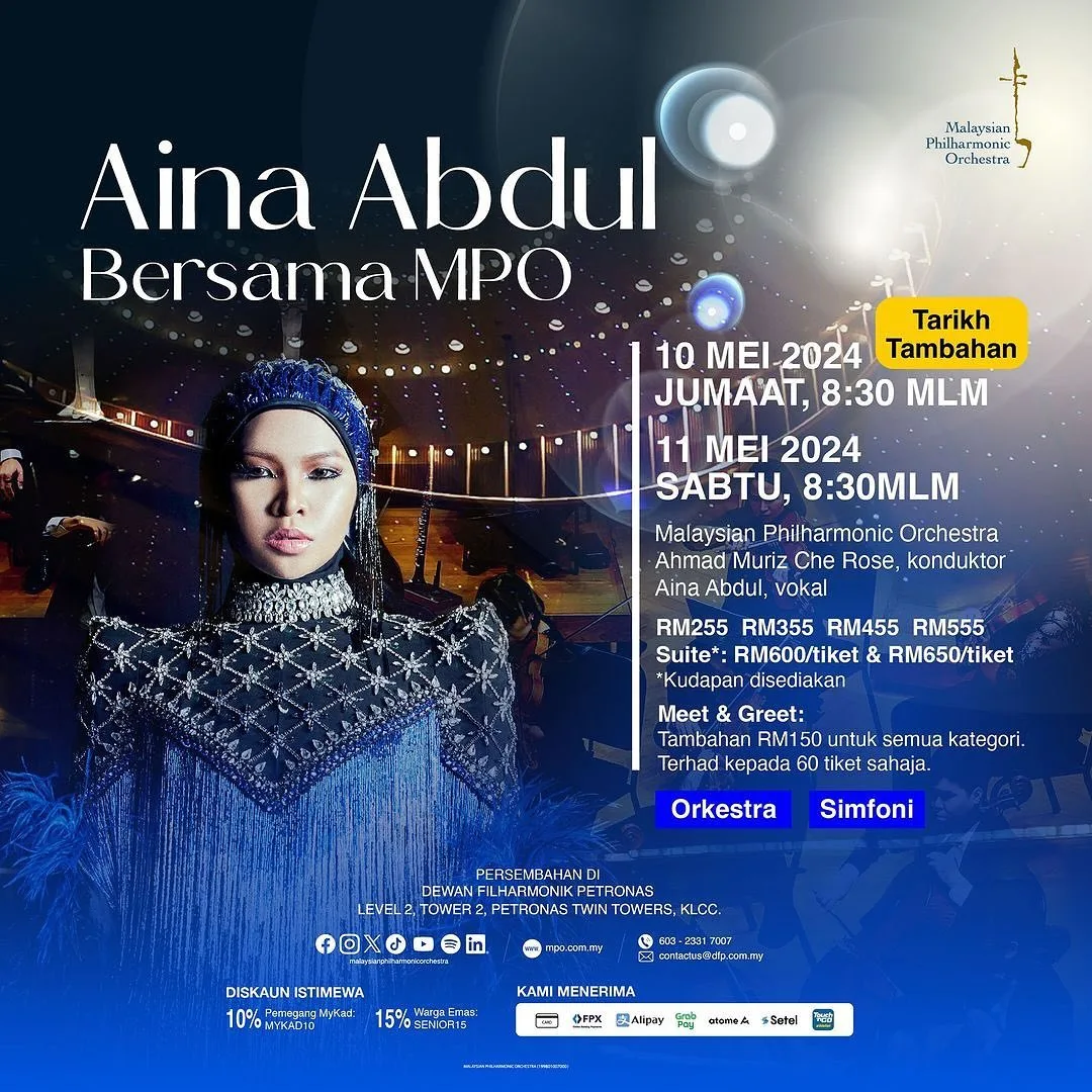 Join Aina Abdul in an exclusive evening celebrating her well-loved numbers in a special arrangement by the Malaysian Philharmonic Orchestra! Expect elevated interpretations of hits like Semalam, Sumpah and more. Click here to get your tickets!