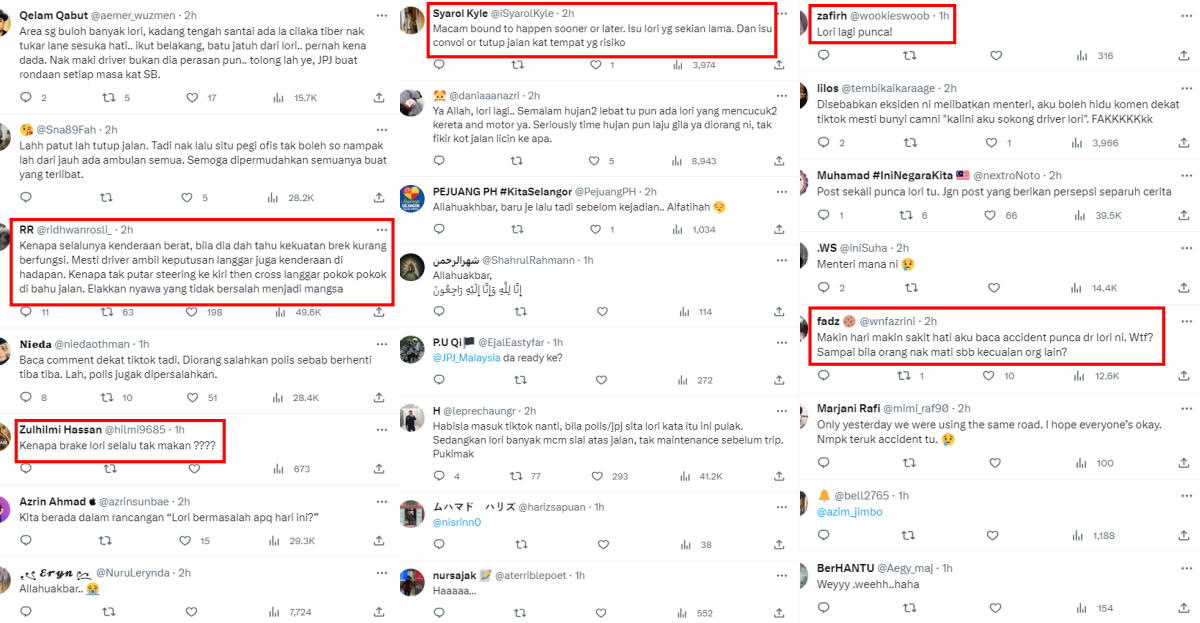 Others felt such accidents were far too common. “It seems like it was bound to happen sooner or later. This lorry issue has been (a long time coming). And the issue of convoys or closing roads in risky areas,” a comment read. Another said: “With every passing day, the more my heart hurts reading about accidents caused by lorries. Wtf? Until when will people die because of other people’s carelessness?”