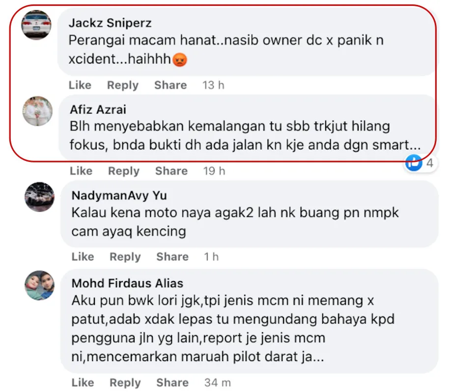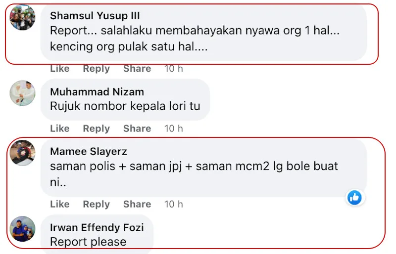 Needless to say, a lot of netizens were upset at the lorry driver’s ludicrous act. Scrolling through the comments, most of them criticised the driver for his disrespectful action. Many were also concerned that the car driver might had gotten into an accident from the shocking incident. At the same time, others even urged him to lodge a police report about the case.