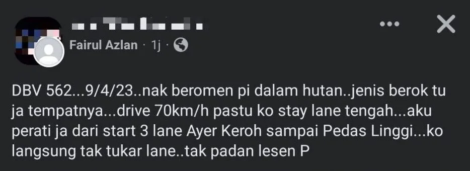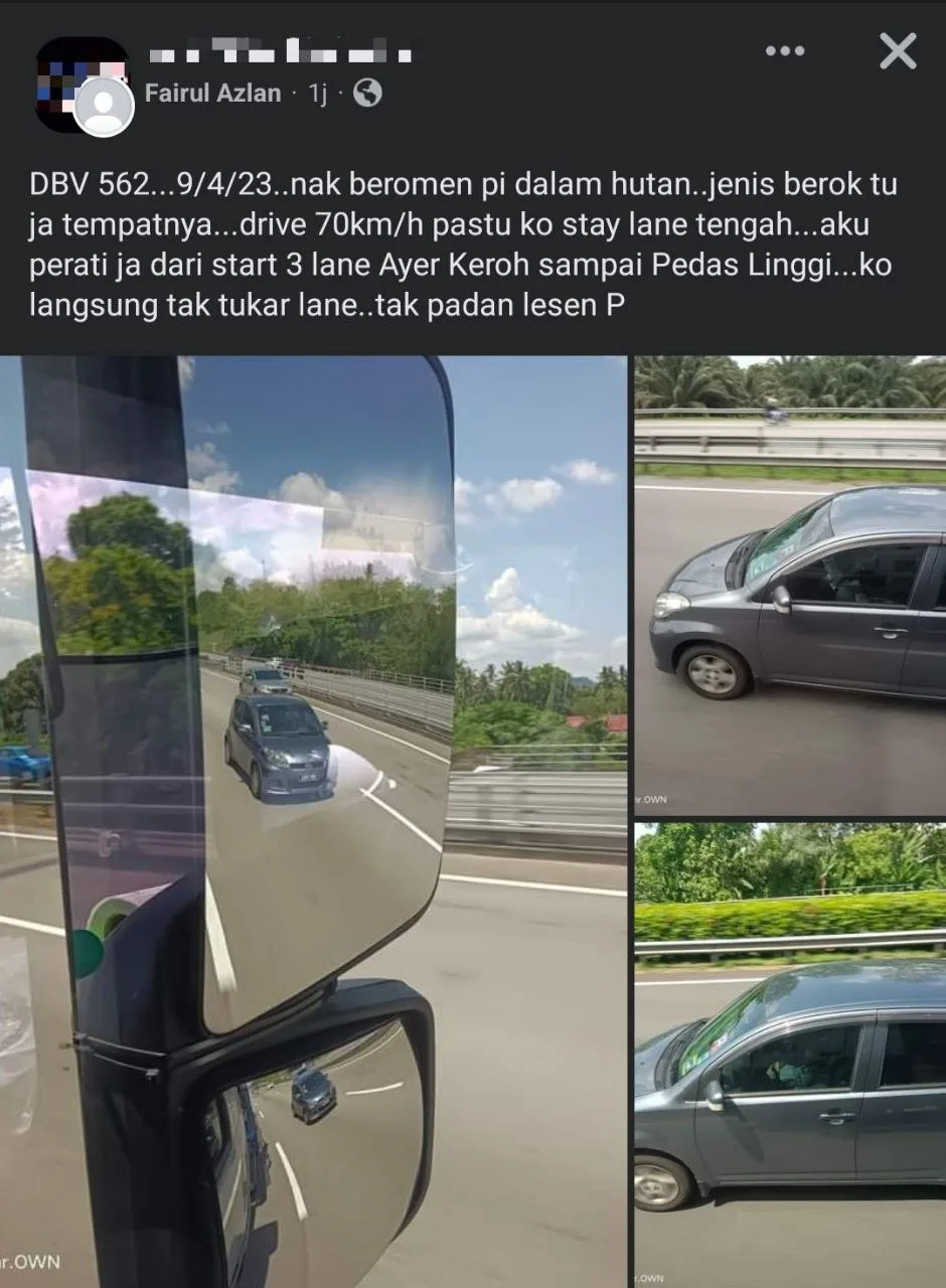 According to a Twitter post, a lorry driver had spotted a local couple cuddling in a Myvi. “(They) drove at 70km/h and stayed in the middle lane. I observed (them), starting from Ayer Keroh to Pedas Linggi,” the Tweet read. “(They) didn’t change lane at all. (Their actions don’t suit) the P license.”