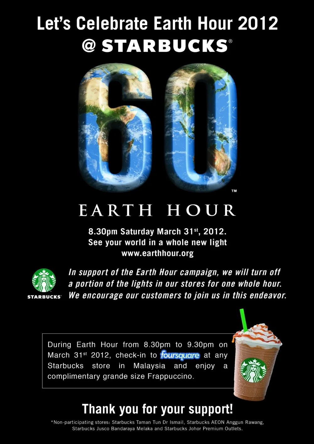 Speaking of having coffee, Starbucks Malaysia has got something special in store for those who are in support of Earth Hour 2012. Not only will they be participating by turning off a portion of lights in all their outlets, they will also be turning this into a celebration of sorts!