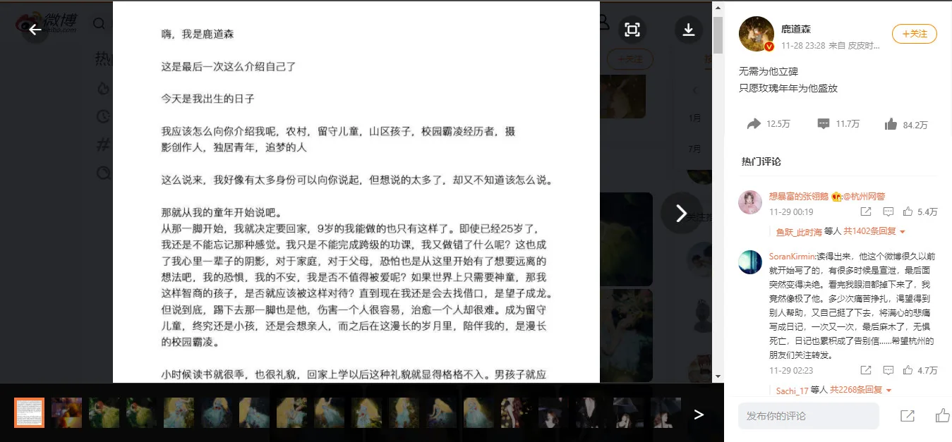 It has been a few days since Chinese internet celebrity and photographer Lu Daosen (鹿道森), real name Zhou Peng (周鹏) disappeared from Weibo. Netizens were rightfully concerned as his last message was a suicide note.