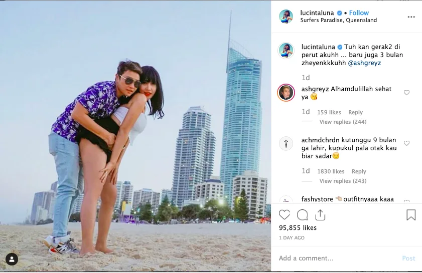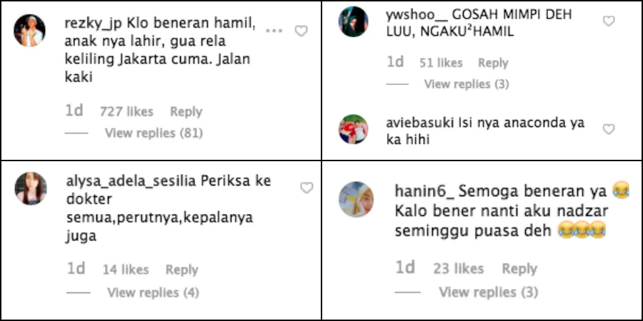 The comment section was flooded with hilarious comments by netizens, expressing their disbelief towards the news. Most of them found the news to be surreal since Lucinta and Abash are both transgender. Some also sarcastically expressed their wish to fast for a week and even to travel around Jakarta on foot.