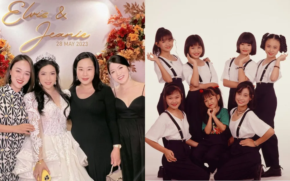 Most of these child-girl groups have disbanded years ago, for various reasons. But, it seems the girls themselves have not forgotten their fellow friends and members in the industry. Recently, Angeline blessed fans with a photo of some of the girls at 快乐小天使’s Jeanie Liew (小青)’s wedding!