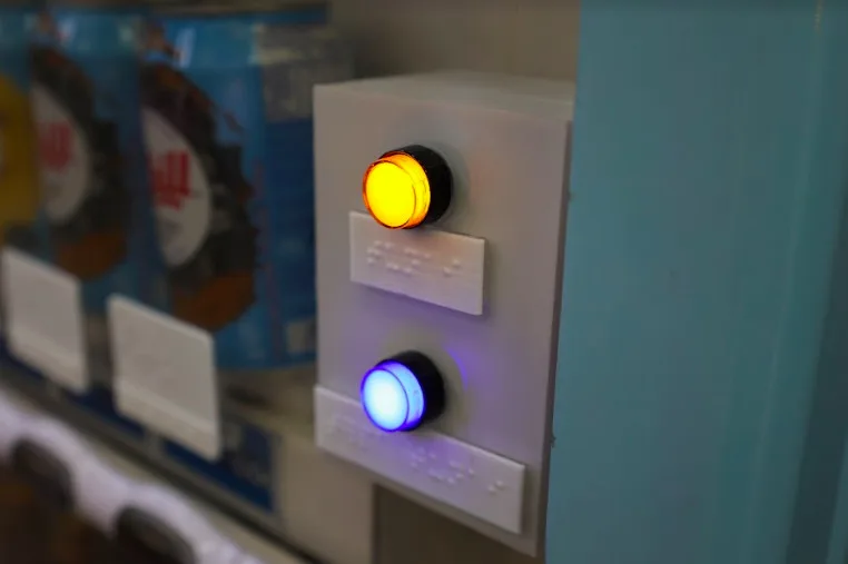 These special vending machines not only offers audio-guided instructions for purchasing drinks, but also cash and cashless payment options.