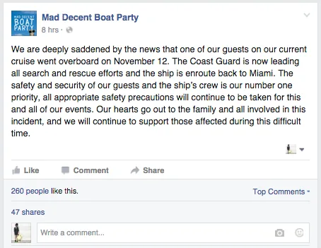 The “Mad Decent Boat Party” organiser has since released an official statement via their Facebook page regarding the incident: