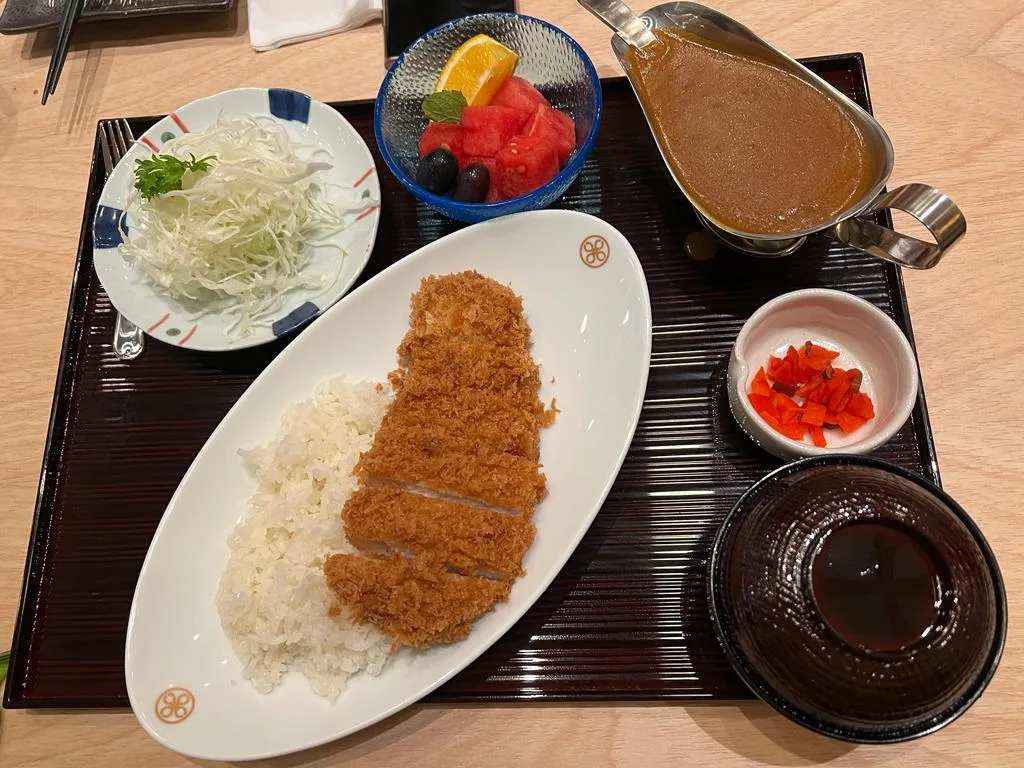 Now, for the mains. We had the chance to try a variety of Tonkatsu sets. Each set comes with bottomless portions of fluffy Japanese rice, crisp-sweet cabbage, and savoury umami miso soup. And there were fruits on the side too.