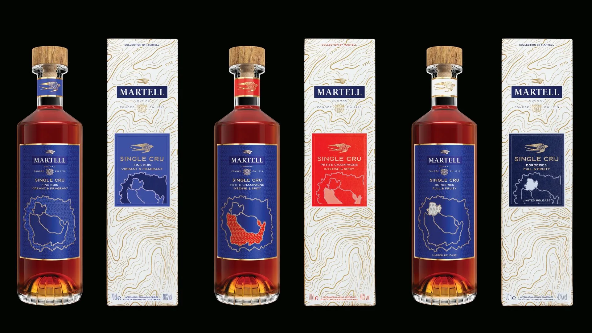Structured in three ascending editions, right up to a selection of rare or extra-rare vintages, The Martell Single Cru Collection will be enriched over time, with each new release representing a fresh discovery of the House’s terroirs, an exploration of new taste sensations.