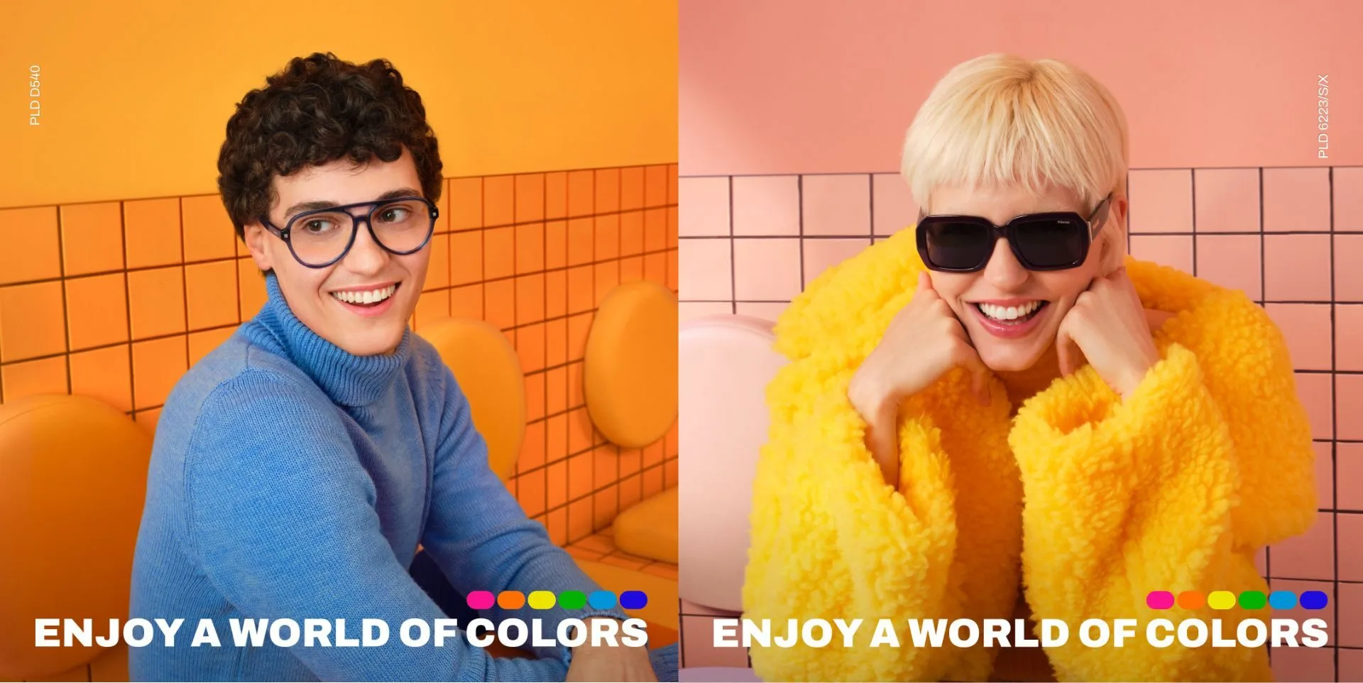 - PLD 7055/S: Semi-rimless polycarbonate frames with Ultrapolar HD lenses for superior colour perception, featuring bold colourways like matte blue/black with blue mirror lenses.
