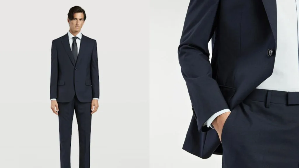The Sacoor Brothers Timeless Essential Business Suit is a trusted favourite which never goes out of style. This suit features a two-button blazer with notch lapels and coordinated trousers. Tailored from 100% wool and fully lined for comfort, it is impeccably designed to exude professionalism and style.