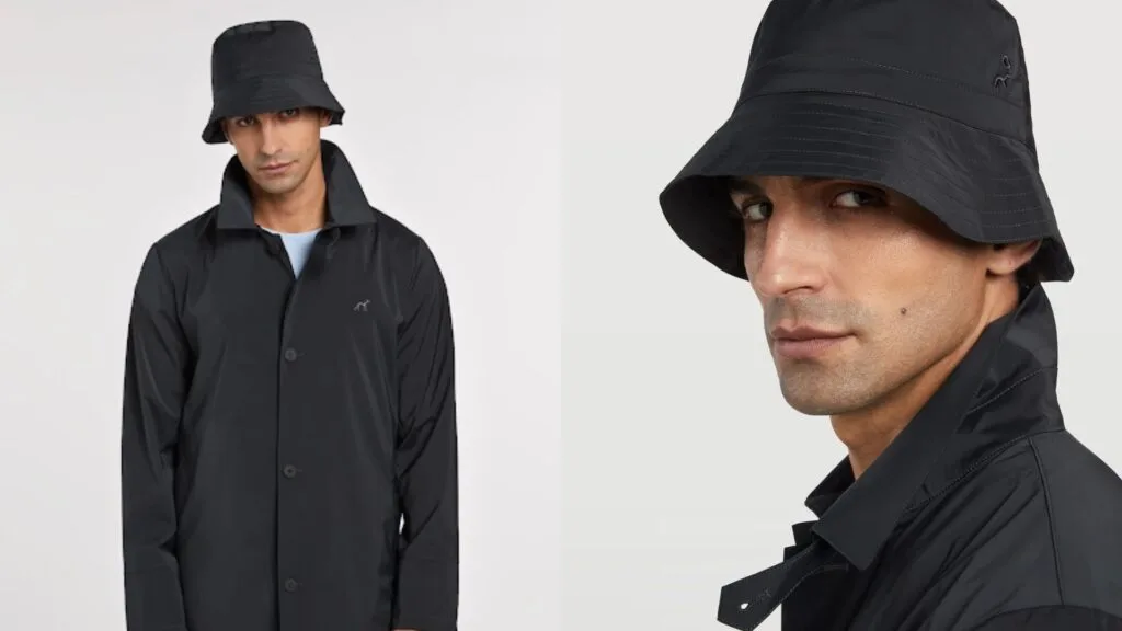 Living in a tropical climate, the Packable Raincoat is a necessity. Lightweight and water-repellent, this raincoat features a front button fastening and distinctive interior details including a packable pocket and a bucket hat for rain protection.