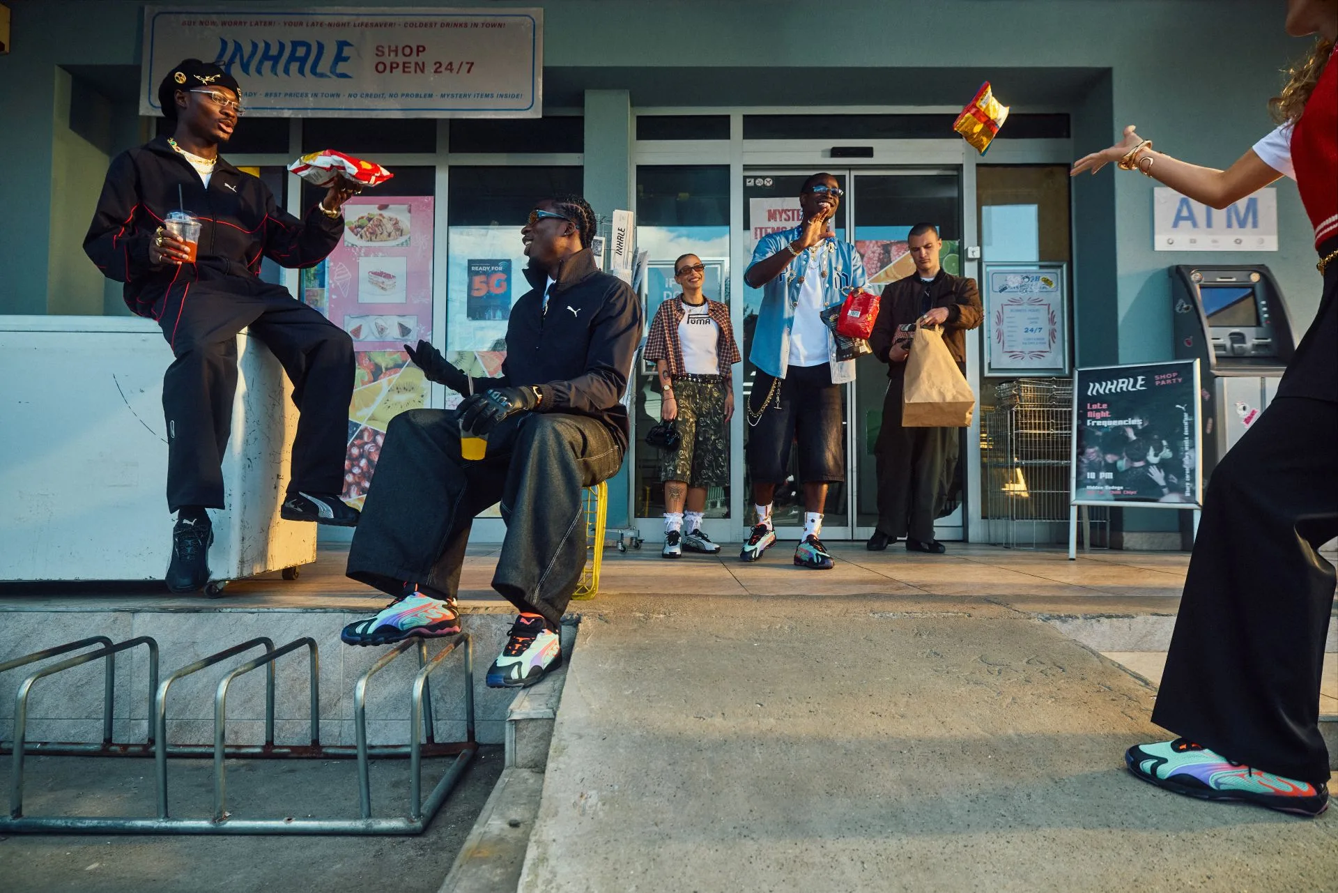 Showing the self-styled cast of content creators, behind-the-scenes visuals offer a raw look at the creative process: styling moments on the late-night Inhale shop set, candid moments with the cast, the chaos, and everything it takes to bring a sneaker shoot to life.