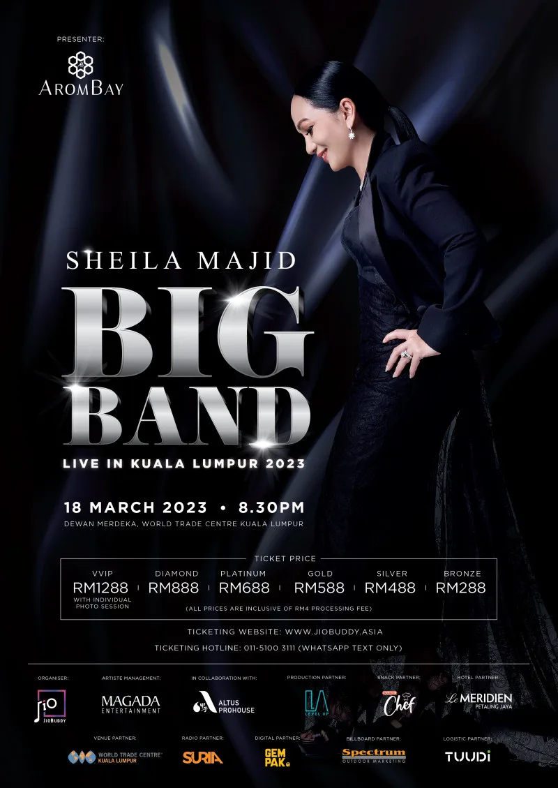 “The ‘Sheila Majid BIG BAND Live in Kuala Lumpur 2023′ is a way for me to reconnect with my fans and entertain them once again with my songs. Their strength has supported me throughout my career. I promise to make this concert an unforgettable experience for us all,” said the legendary singer.