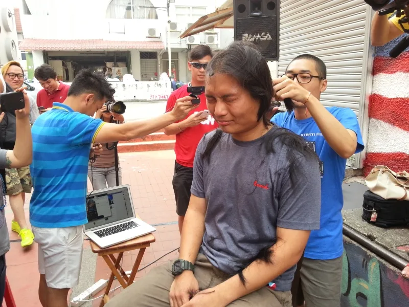 A small crowd of supporters, family members, friends, and members of the media gathered at Wheel Love Skateshop in SS15 Subang Jaya late Sunday afternoon to witness an act of selflessness and compassion. 28-year-old Geh Chee Minh was about to give up his super long ponytail in the name of cancer research.
