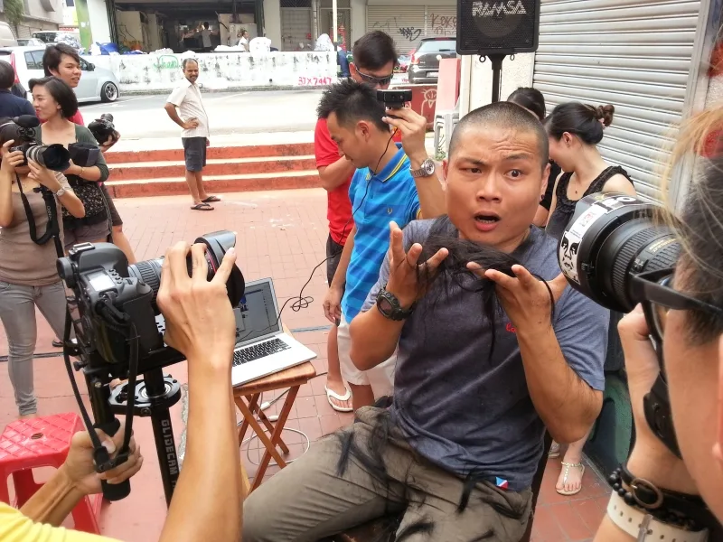At that point, he announced that donations as much as RM19,190 has poured in. Keeping to his word, Chee Minh then had a friend grab a pair of scissors and ceremoniously chop off his 10-year-old ponytail. 15 minutes later, he emerged more “lightheaded”, sporting a crew cut.