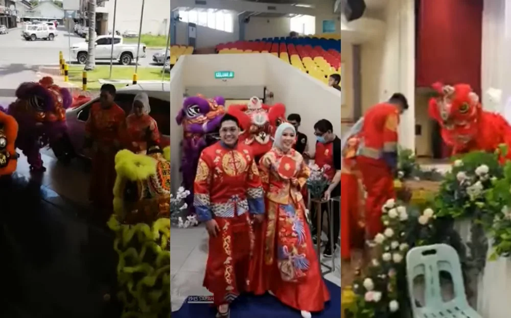 A Malay couple from Tawau, Sabah, recently held their wedding banquet at the Tawau City Hall. It’s not unusual. However, this couple went all-out to celebrate their Chinese heritage as well! The duo apparently hired a local lion dance troupe to entertain their guests and wore traditional Chinese clothes as their wedding outfits.
