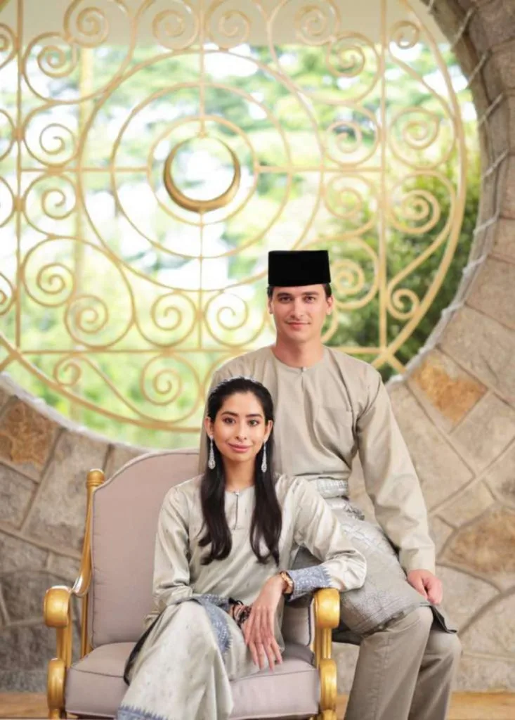 The 2 photos were taken reportedly last week at Istana Bukit Serene. The first photo shows the gorgeous couple wearing matching grey traditional Malay attire while the 2nd photo features the pair in stylish casual wear.