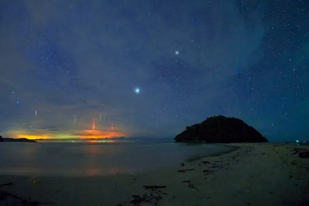 Andrew JK Tan and the group of photography enthusiasts first spotted the light beams at 9pm near Pulau Kelambu in East Malaysia. The light pillars danced in the sky for a couple of hours before they started to fade at 1am on Thursday (22nd June 2017) morning.