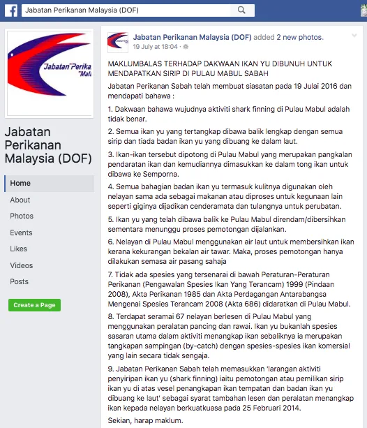 Meanwhile, Malaysia’s Department of Fisheries (Jabatan Perikanan Malaysia) have taken to their Facebook page to release a statement with regards to the now viral shark killing images.