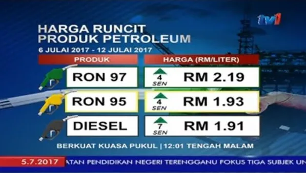 RON95 will be priced at RM1.93 per litre (up from RM1.89) and RON97 at RM2.19 per litre (up from RM2.15), while price for diesel has also been adjusted to RM1.91 per litre (up from RM1.84).