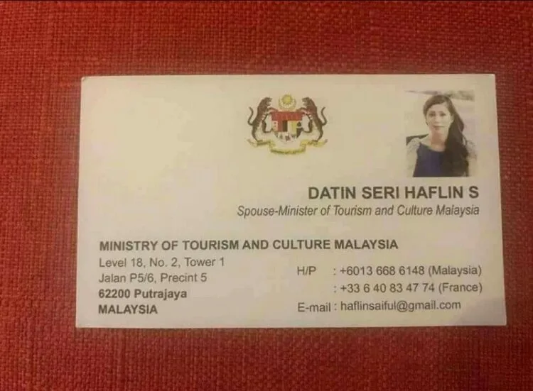 As seen in the screenshot above, the card bears a small picture of her, her name (Datin Seri Haflin S), her “position” (Spouse-Minister of Tourism of Culture Malaysia)”, the address of the ministry’s office in Putrajaya, as well as contact numbers. The public Facebook post has since been shared over 1,200 times, garnering more than 1,900 reactions.