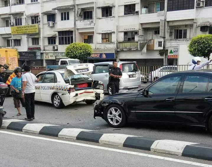 The unfortunate event reportedly took place at Jalan Loke Yew, Kuala Lumpur at 3:30pm on Friday (21st July). According to Info Roadblock JPJ/Polis’ Facebook page, 2 police officers (aged 30 and 45) sustained injuries when their car was hit by the luxury vehicle.