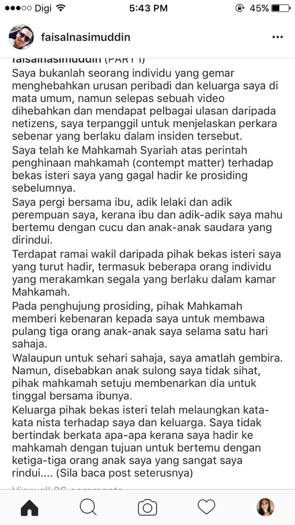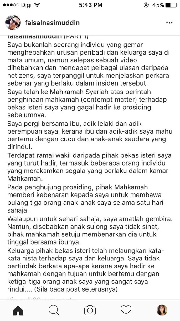 After the video went viral, the 37-year-old father took to Instagram to share his side of the story to 83,000 followers. Though his account is set to private, many of his followers have screen captured the posts, which consist of 3 parts, and shared it on social media.