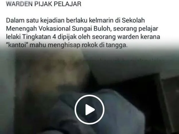 A new video showing a school warden attacking a student at a vocational school in Sungai Buloh has gone viral on social media.