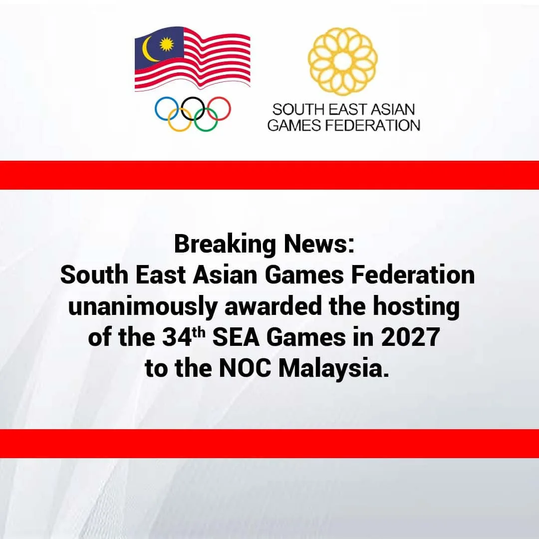 The Olympic Council of Malaysia posted on their official Facebook page announcing the news that Malaysia has been awarded to host the 34th SEA games. According to the post, the South-East Asia Games Federation (SEAGF) unanimously awarded the hosting of the 34th games to Malaysia during the SEAGF Meeting at the Vietnam National Convention Centre today (12th May).