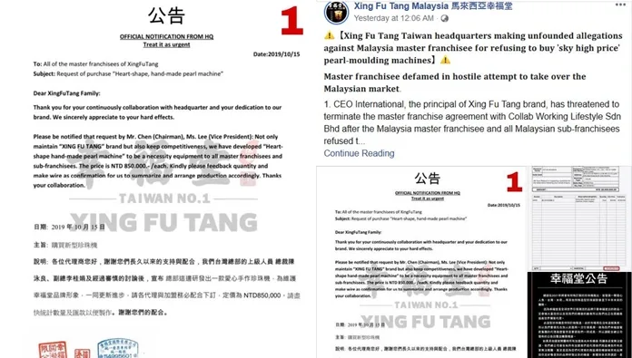 Xing Fu Tang Malaysia then took the dispute online, by posting all the details of the dispute on their Facebook page. The post listed out multiple unreasonable demands made by the Taiwanese company, which includes a demand for purchases of machines deemed overpriced by the local agent.