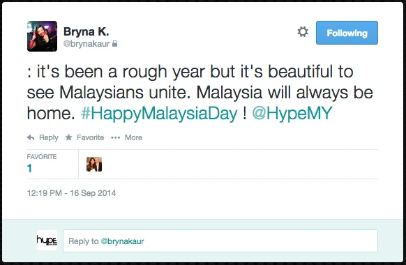 @HypeMY i’m grateful that at heart, malaysians are never defined by race or religion. we stand united. always <3 #MalaysiaDay