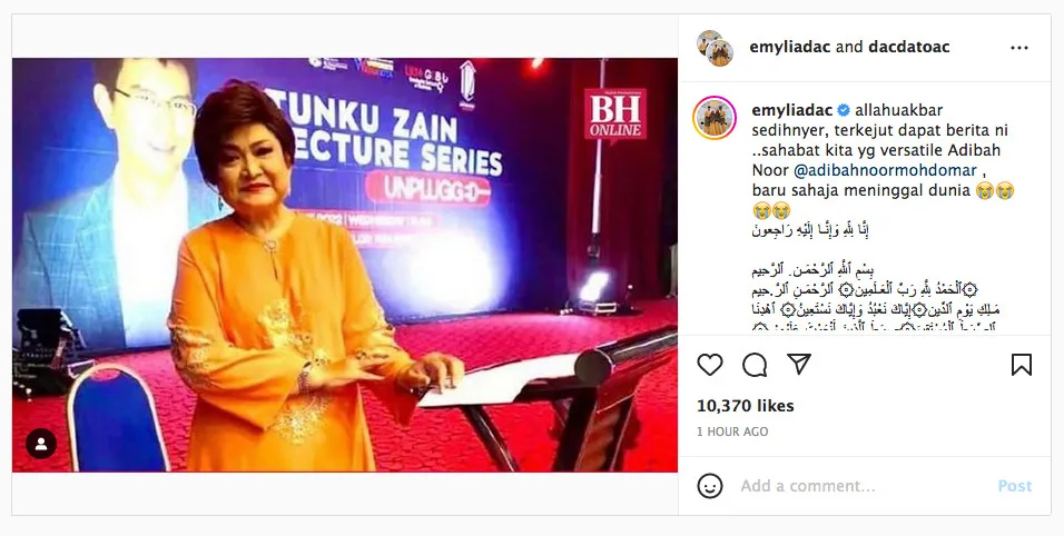 The heartbreaking news was confirmed by celebrity friend Datin Emylia Rosnaida, who happens to be the wife of Datuk AC Mizal. The joint post also appeared on AC Mizal’s Instagram account.
