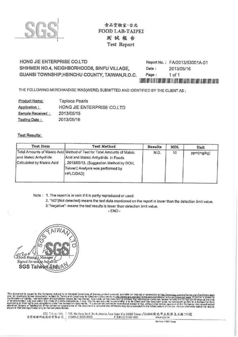 Both Ochado and Chatime Malaysia have posted the test results and relevant documentation on their Facebook pages to prove that their tapioca pearls are safe for consumption. Gong Cha Malaysia director Billy Koh said they sent their pearls for lab testing on April 30 and received a report on May 9 that the pearls were free from maleic acid.