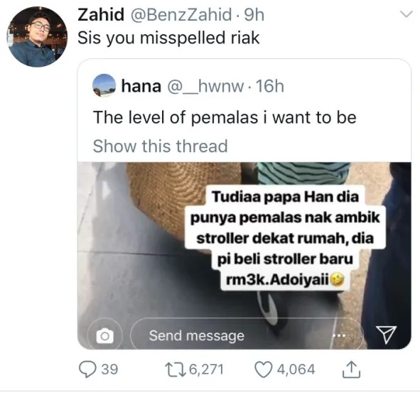 Basically, the couple received unwanted attention last week when Cik Epal revealed on social media that her husband had purchased a new stroller because he left the one they have at home.