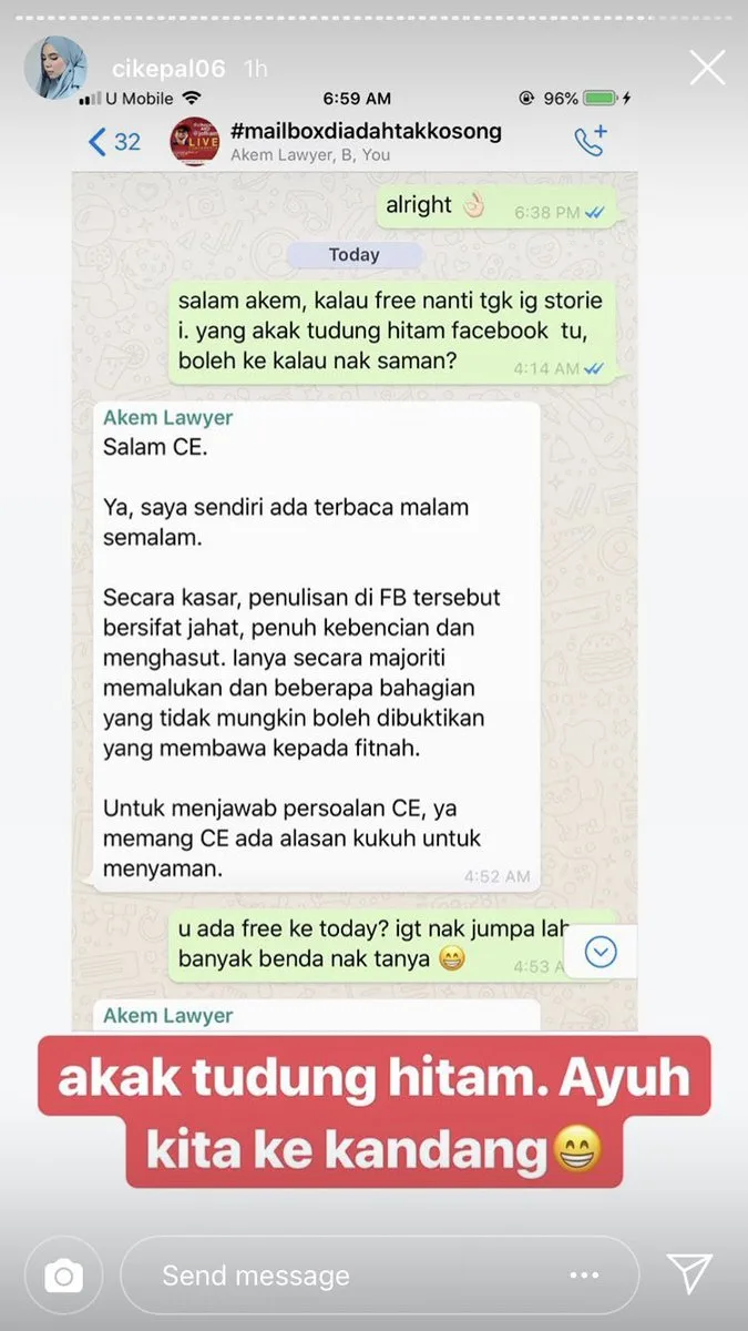Cik Epal also said that she doesn’t care if people call her action’s immature or compared her to other influencers and artists, she will continue to do so since it is her rights, not to mention that she has been taunted and challenged by many people on social media who doubt that she will really take action.