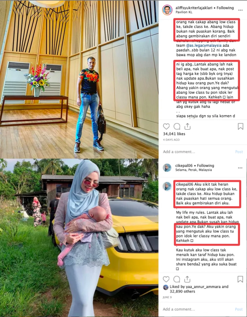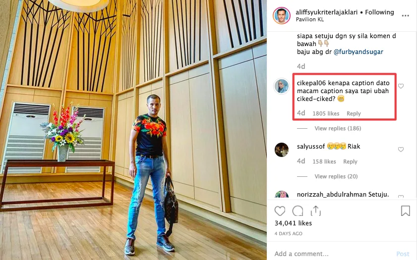 The stroller is not the only reason why the couple is blasted on social media. A few days after their stroller case went viral, Cik Epal claimed that one of her caption on Instagram has been plagiarised by infamous entrepreneur Dato Aliff Syukri.