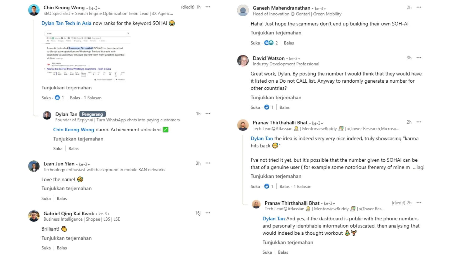 Online reactions have been largely positive, with praise for the concept of the chatbot and suggestions for further improving the functionality of SOH AI. It appears there has been pent-up animosity towards scammers on the Malaysian internet, and all it took was a chatbot to encapsulate this sentiment.