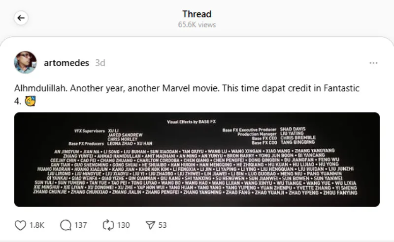 “Alhamdulillah. Another year, another Marvel movie. This time, I was credited in The Fantastic Four 🥳,” he wrote, sharing a screenshot of the end credits featuring his name alongside his team. Obviously, since the film was a huge success, Ahmad’s post quickly went viral, with many expressing curiosity as to how he landed the job, what specific aspect of the film he worked on and how much he was paid for the project.