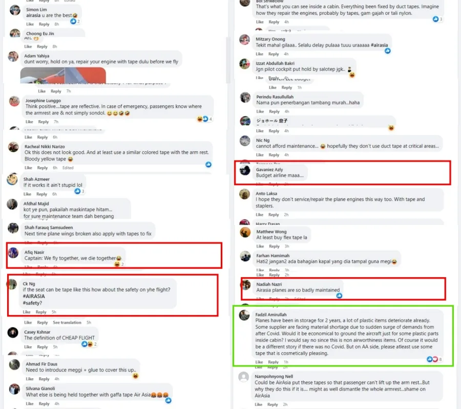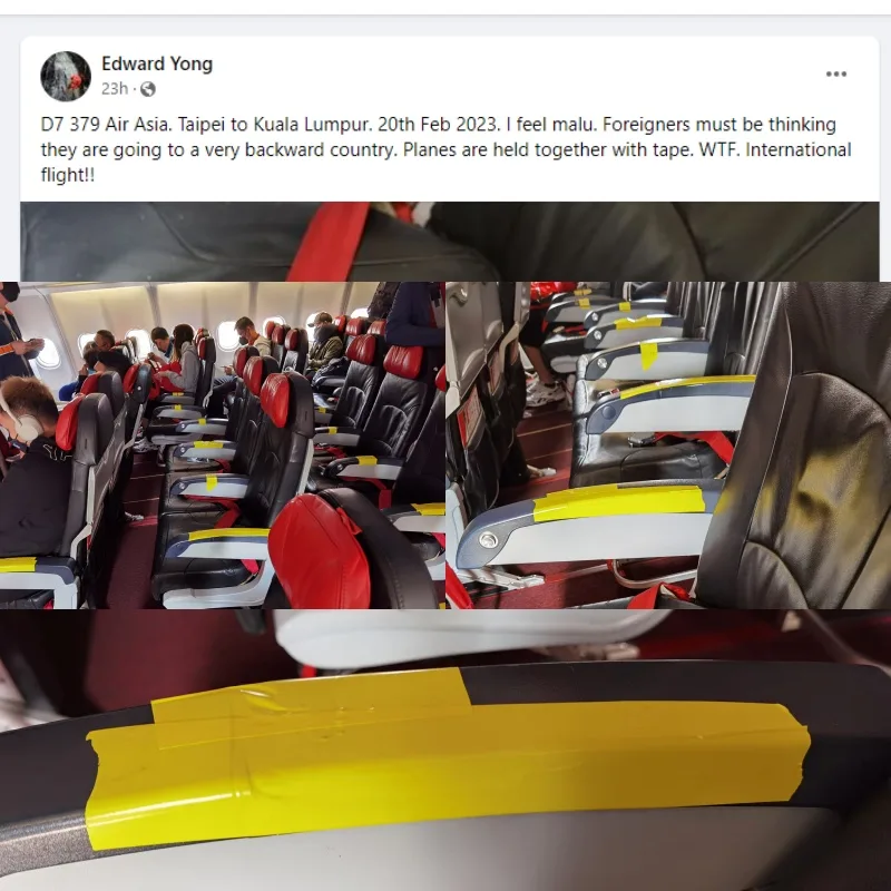 In the photos shared by the user, we can see that the armrests of the seats on the AirAsia plane were held together with bright yellow tape, as described in the caption. The post managed to attract a lot of attention from netizens, now reaching over 1k comments and 2.3k shares at the time of writing. Netizens all gave their thoughts on the situation.
