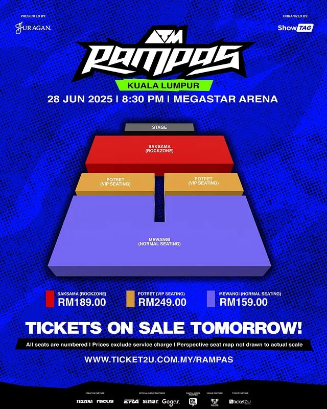 - Ticket Prices: SAKSAMA (Rockzone): RM189, POTRET (VIP Seating): RM249, MEWANGI (Normal Seating): RM159