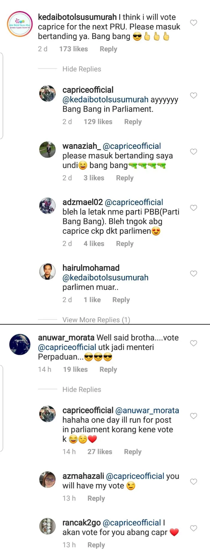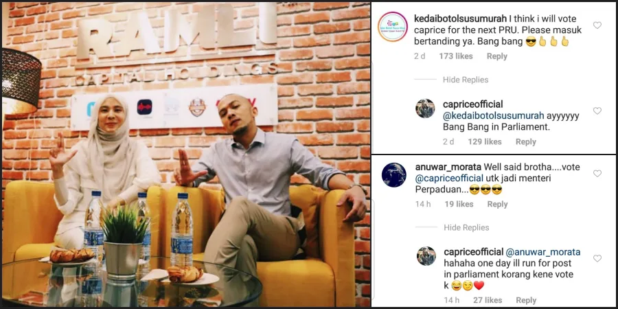 Through one of his posts, Caprice said that he will consider joining the parliament in the next 5 years if his photo with Nurul Izzah gets 50,000 likes.