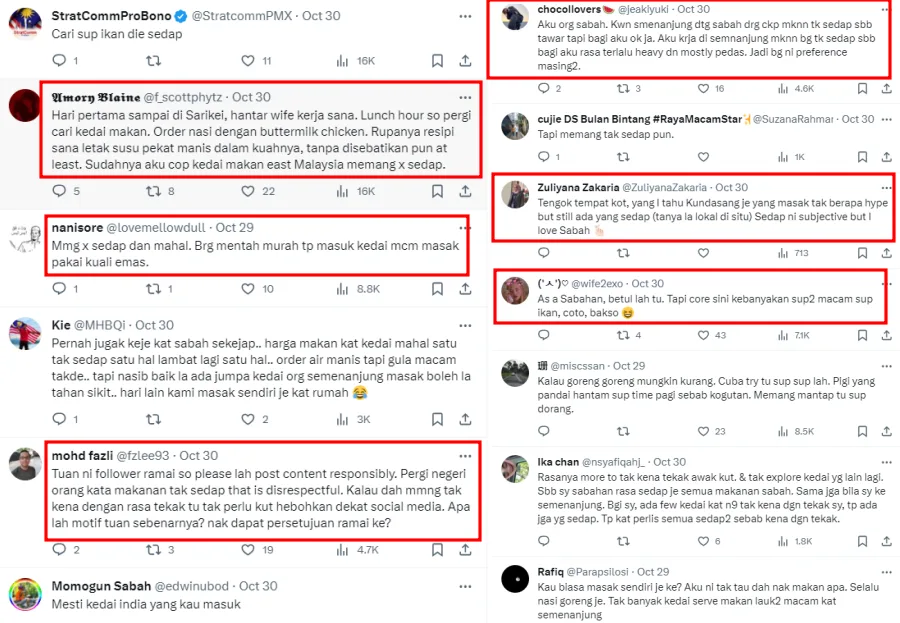 Another opined the food not only tasted bad, but was also expensive. A netizen, who claimed to be a Sabahan, agreed as well, before claiming most of their core food were soup items. However, there were also plenty of netizens who disagreed.
