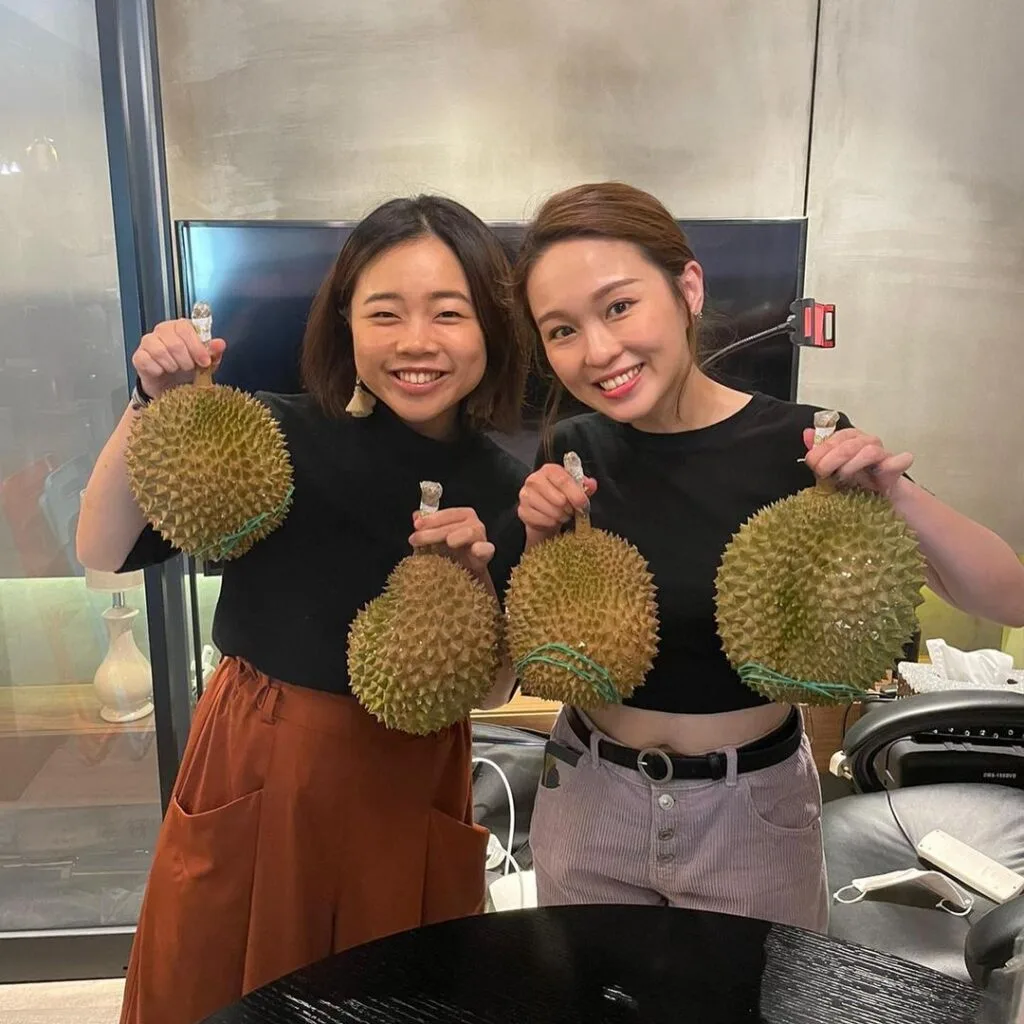 “I met the owner of the Malaysian Musang King Durian Garden while filming,” Karen said during a live broadcast event with fellow singer Elise Suen (孫儀凌). “By coincidence I started selling durians and the business was good.” Karen explained that even when she participated in “National Stars III (全民造星)” last year, she had zero income. “I rely on the durian business to help my life now,” she explained. “(Even now), I’m still selling durians,” she added cheerfully.