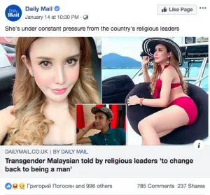 One of the most famous transgender figures in Malaysia – Safiey Ilias – has gotten the world’s attention when her story was covered by popular British tabloid newspaper Daily Mail.