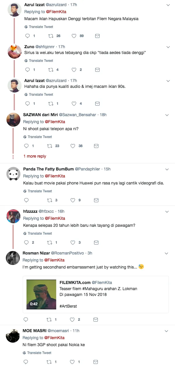 The teaser was first released on Twitter by FilemKita. After seeing the 43-second video, netizens were dumbfounded by the bad quality questioning if it is an old movie made in the 90s or a bad movie parody.