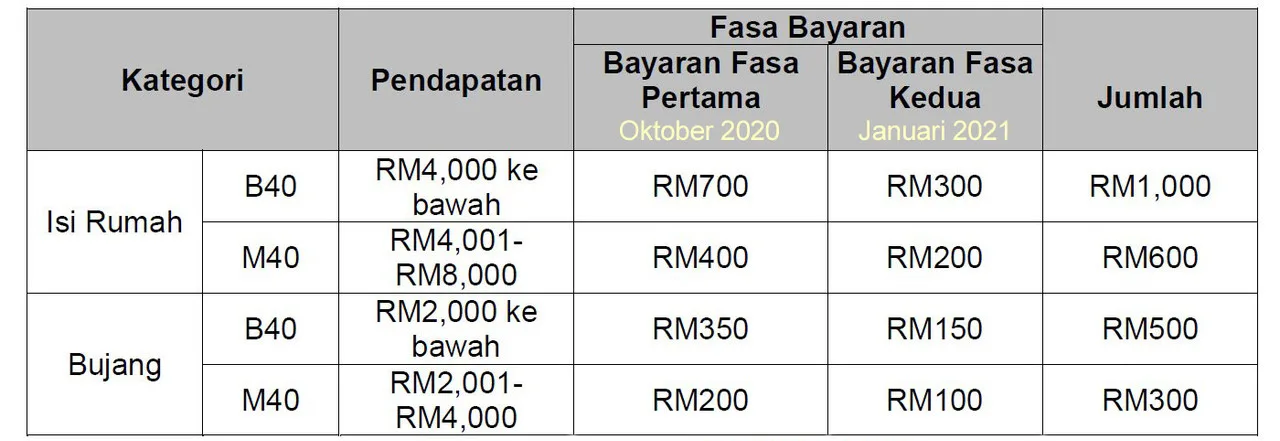 Existing recipients will receive the remainder of the promised cash amount according to the following income groups. The B40 group will receive it on the 21st while the M40 group will receive theirs on the 25th.