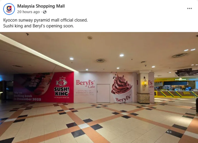 It seems that another store in the same shopping centre has shut its doors. According to a post on the Malaysia Shopping Mall Facebook page, the KyoChon 1991 outlet at Sunway Pyramid has officially ceased operations. The spot will reportedly soon be replaced with a Sushi King and Beryl’s Cafe.