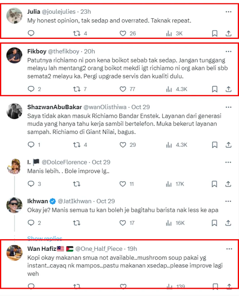 Several other netizens also vouched for the coffee chain, praising their food, especially the local delicacies that Richiamo offers. While some weren’t satisfied with the coffee, they did mention that the cafe has better non-coffee options, suggesting their chocolate and boba drinks.