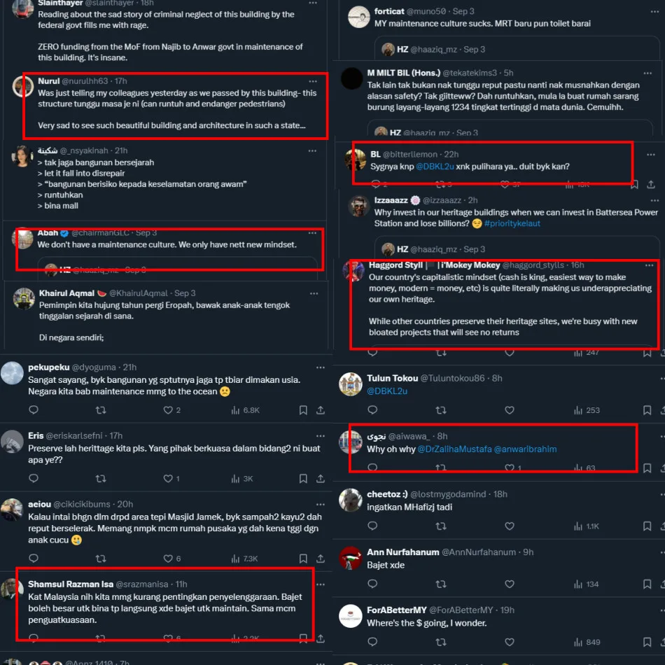 Some tagged Prime Minister Anwar Ibrahim, KL City Hall (DBKL) and the Minister of Prime Minister’s Department (Federal Territories) Dr Zaliha Mustafa in hopes that something can be done to better preserve the iconic landmarks around the city. This is not the first time that the people have urged restoration of historic buildings.