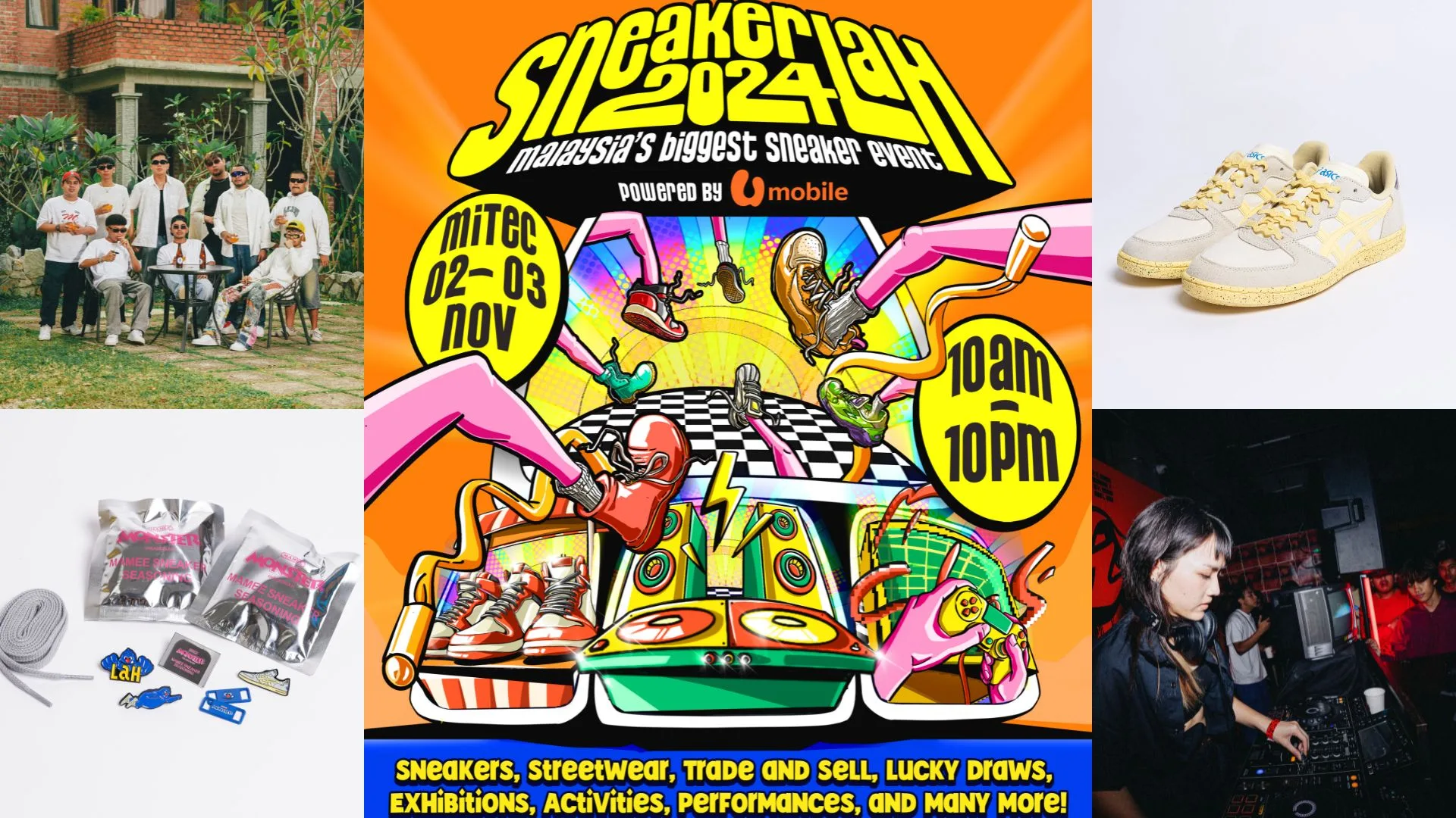 Other attractions include a 3×3 basketball tournament by PEAK KL, the “Morph by Phyn” exhibition by local designer Phyn Studio, a live podcast session by BorakLAH featuring special guests, an F&B village to keep attendees energised throughout the day, exclusive product drops including coveted CLOT x adidas and SneakerLAH x X-LARGE merch, SneakerLAH’s staple trading pits and lucky draws with prizes by U Mobile, ASNB, and SneakerLAH, lacing competitions by ASICS, and many more